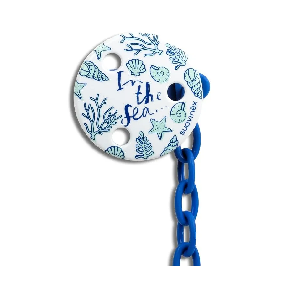 Presentación:Pack de chupete y broche in the sea azul. Suavinex