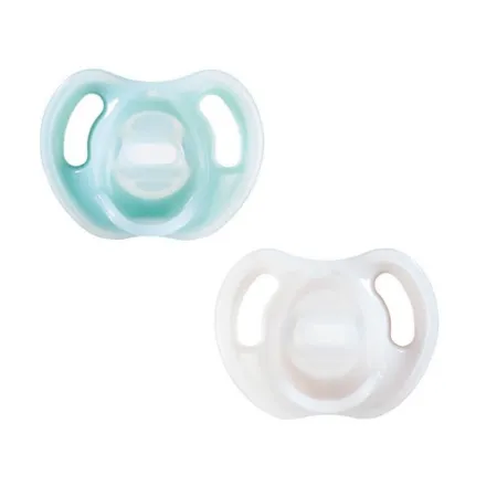 Los chupetes Ultralight cuentan con una tetina anatómica y simétrica de silicona médica que repele la suciedad. Es suave, flexible y resistente con un alto grado de aceptación. Brinda un tacto extra suave como la piel y está formados en una sola pieza muy ligera y fácil de limpiar que permite que el chupete permanezca fácilmente en la boca del bebé sin caerse continuamente. Ese escudo curvado y con orificios amplios de ventilación favorece un ajuste cómodo evitando las irritaciones producidas por las babitas. No contienen BPA ni BPS y son aptos para el lavavajillas. 2 unidades presentadas en una cajita esterilizadora.