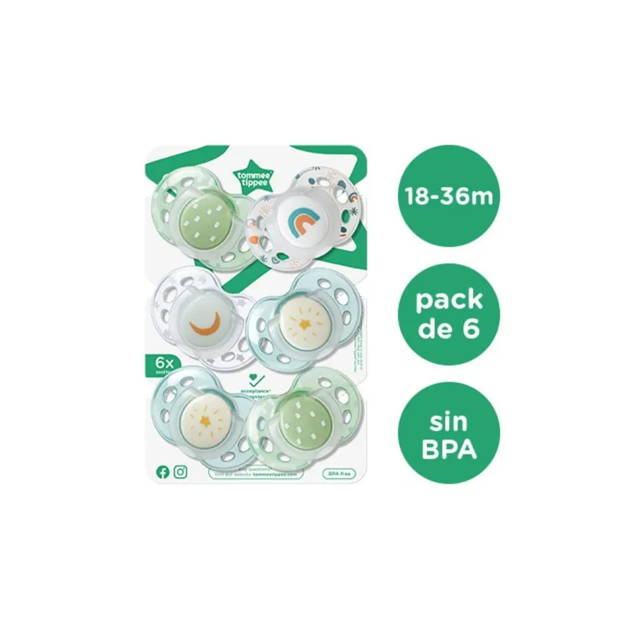 Pack de 6 Chupetes 18-36 Noche . Tommee Tippee