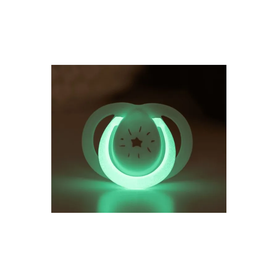 Estos Chupetes son perfectos para las noches, te ayudaran a encontrar más fácil el chupete sin encender la luz. Así podrás tener al alcance el chupete de tu peque, ayudándole a que esté muy tranquilo, su tetina es simétrica, lo que la hace muy anatómica. El diseño de este chupete ha sido especialmente creado para lograr la aceptación del bebé, evitando su rechazo.