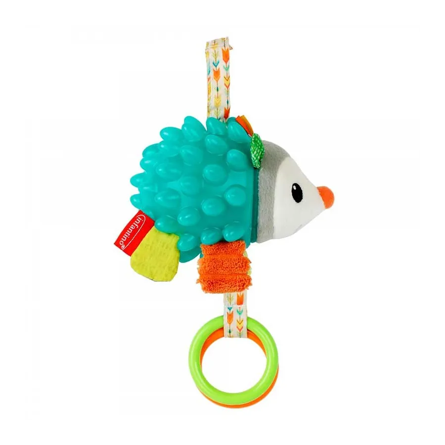 Tierno Colgador-Sonoro de Infantino, de suave tacto y diseño alegre con diferentes estampados y con sonido. Su uso sensorial activa los 5 sentidos del bebé. Con anilla para llevarlo colgado en cualquier lugar.