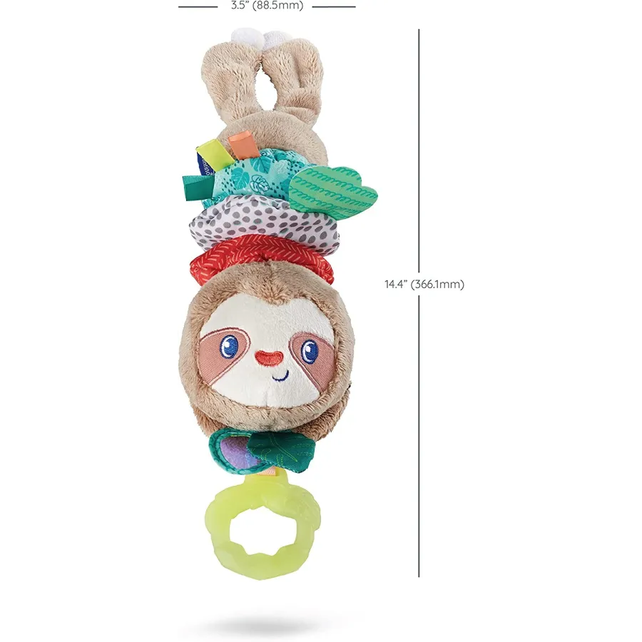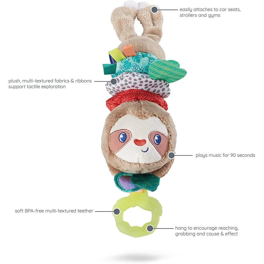 Un perezoso peluche musical abrazable, con bonitas telas de múltiples texturas y cintas de colores y 90s de música para que estén ocupados mientras descubren el juego sensorial