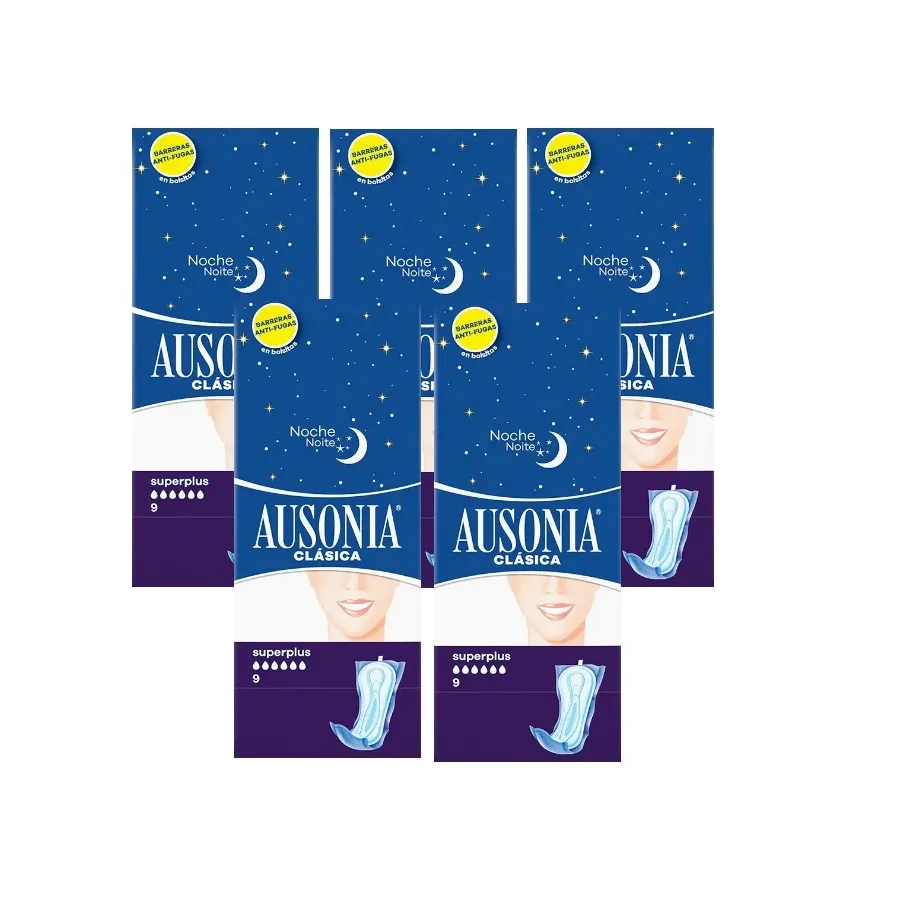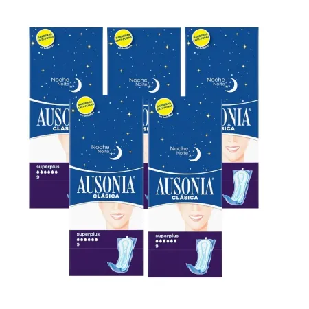 Compresa Ausonia Clásica Noche Super Plus. Pack Ahorro 5 x 9