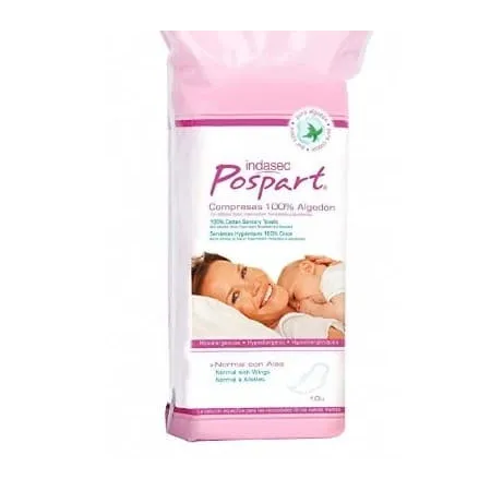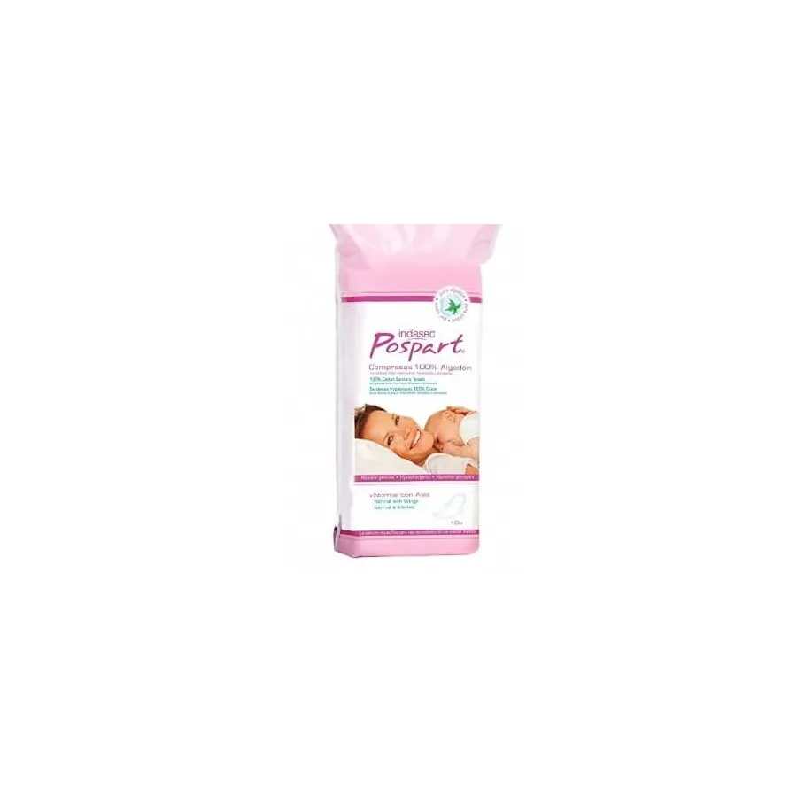 Compresa tocológicas postparto algodón con alas 14 uds. Indasec