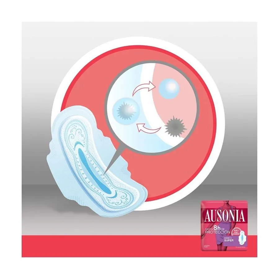 Estas fantásticas Ausonia Súper con Alas, son perfectas para cuando necesitas un aporte extra de seguridad en tu protección. Estas finas compresas son perfectas para los días en que tienes un flujo abundante.