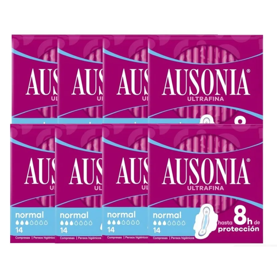 Compresas Ausonia ultrafina Alas Normal, Pack ahorro 8 x 14