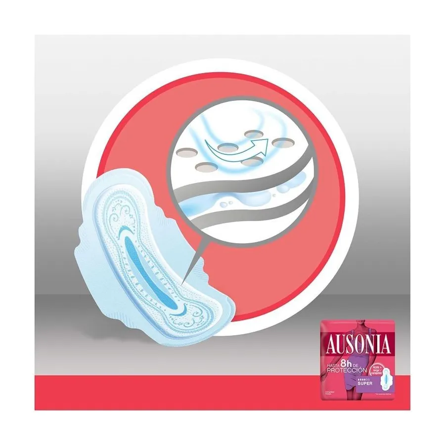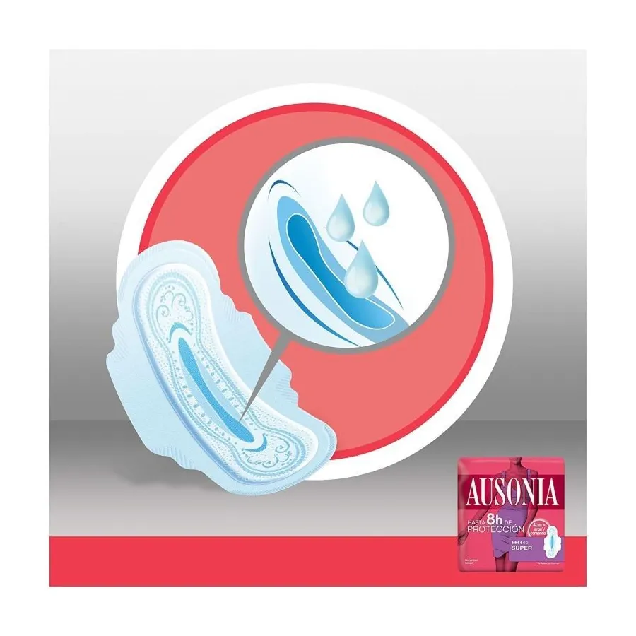 Estas fantásticas Ausonia Súper con Alas, son perfectas para cuando necesitas un aporte extra de seguridad en tu protección. Estas finas compresas son perfectas para los días en que tienes un flujo abundante.