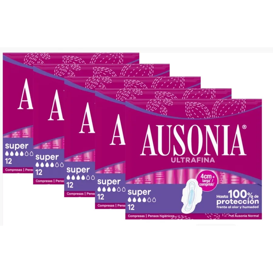 Compresas Ausonia ultrafina día Alas Súper. Pack Ahorro 5 x 12