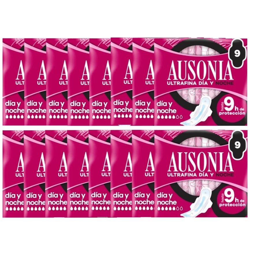 Compresas Ausonia ultrafina día y noche. Pack Ahorro 8 x 9