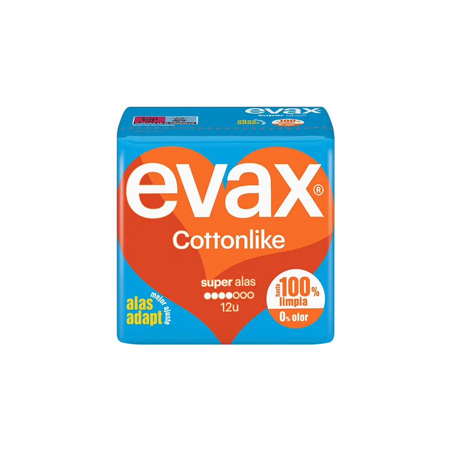 Con estas fantásticas Compresas EVAX Cottonlike Súper con alas ¡no te vas a acordar de que las estás usando!, son perfectas para flujos más abundantes.