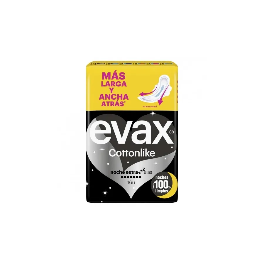 Compresas Evax Cottonlike noche extra alas 16 uds