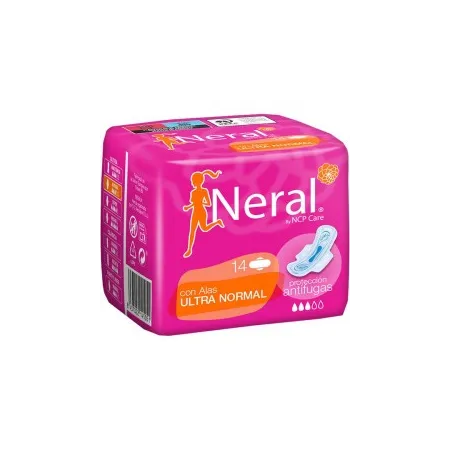 Las compresas ultra normal con alas de Neral han sido diseñadas para brindarte protección y comodidad durante el día. Cuentan con alas para una mayor sujeción a la ropa interior y un ajuste perfecto que se adapta al cuerpo. Gracias a la capa superior que absorbe al instante te sentirás seca y segura durante los días de flujo normal. Estas compresas incorporan pequeños canales para proteger dónde más se necesita y doble barrera anti fugas para tu tranquilidad. Formato paquete de 14 unidades.