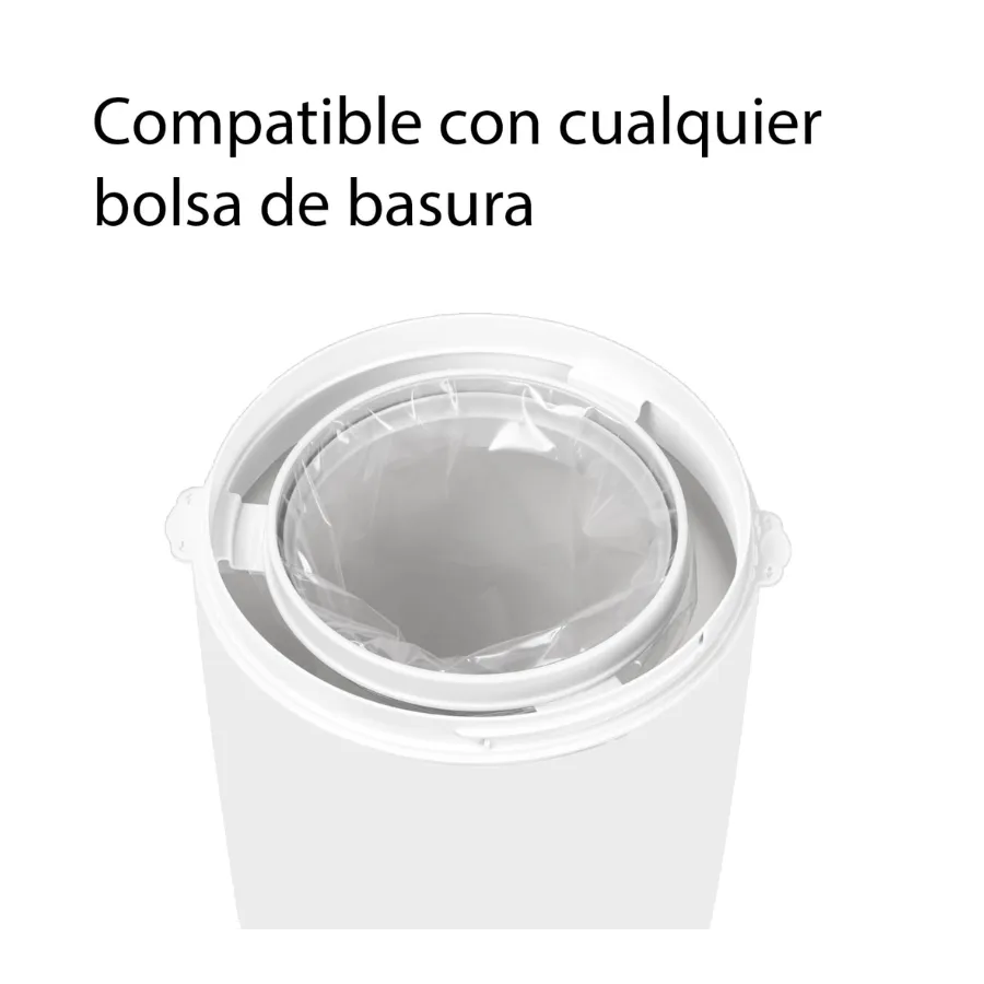 Este contenedor blanco para pañales tiene un diseño moderno, redondo y discreto que se adapta perfectamente a cualquier rincón del hogar. Es ligero, compacto y fácil de transportar, perfecto para quienes valoran el orden y la estética sin renunciar a la funcionalidad.