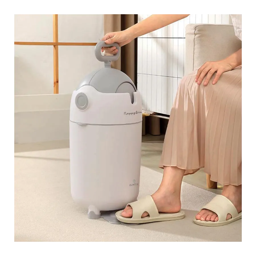 ¿Buscas una solución práctica, higiénica y compacta para desechar pañales sin olores? El contenedor de pañales NappyBin de Olmitos es justo lo que necesitas: eficaz, discreto y con capacidad para hasta 30 pañales.