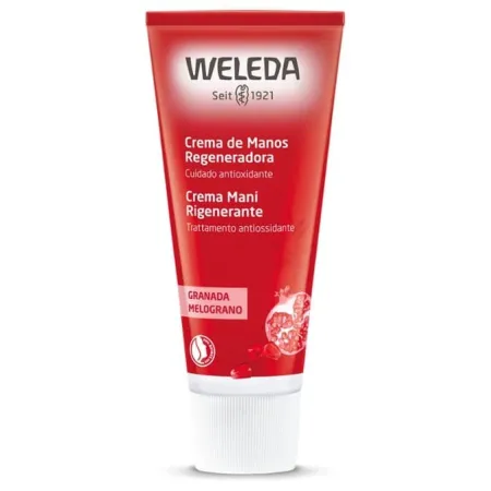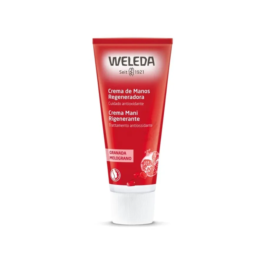 Porque las manos dicen mucho de la edad , con la crema de manos regenerador de Weleda estimula los procesos de renovación celular gracias al aceite de semillas de granada bio.
