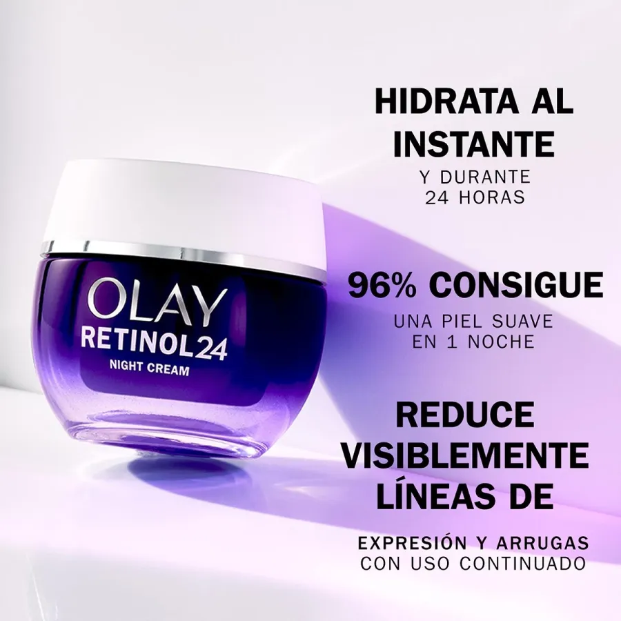 Transforma tu rutina nocturna con la crema Olay Retinol24 de 50ml. Disfruta de hidratación 24 horas y piel visiblemente más suave desde la primera noche. Su Complejo Retinoide y Vitamina E combaten líneas y arrugas, dejando una textura sedosa. Aprobada por dermatólogos, ¡ideal para renovar tu piel! Más Pañales.