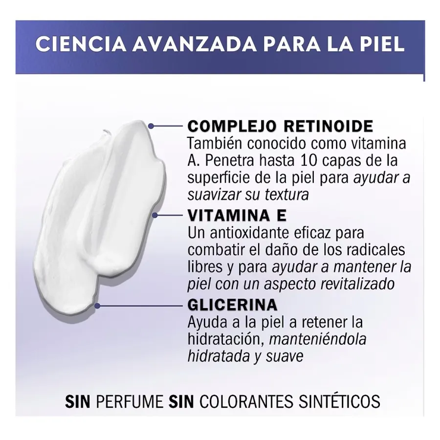 - Complejo Retinoide avanzado: Penetra hasta 10 capas de la superficie de la piel para mejorar la textura y reducir las líneas finas.