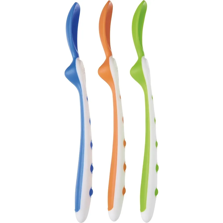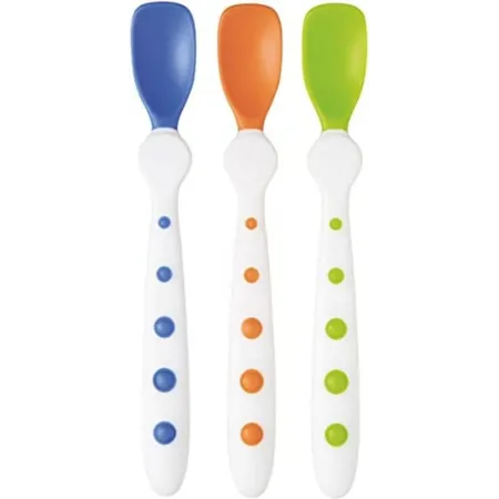 Gracias a su forma estas cucharas cargan la cantidad ideal para un bebé de 6 meses en adelante. Las puntas son extra suaves respetando las encías delicadas del bebé. El mango ergonómico permite un buen agarre y un fácil manejo. Cuentan con un tope para que la cuchara no toque la superficie si se posa en la mesa. Estas preciosas cucharas de colores son más higiénicas y seguras para el bebé. Pack de 3 cucharas. Aptas para lavavajillas.