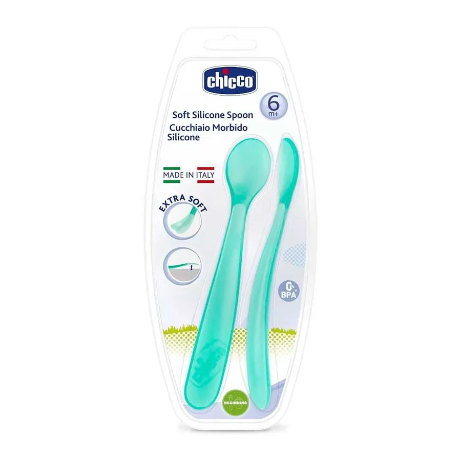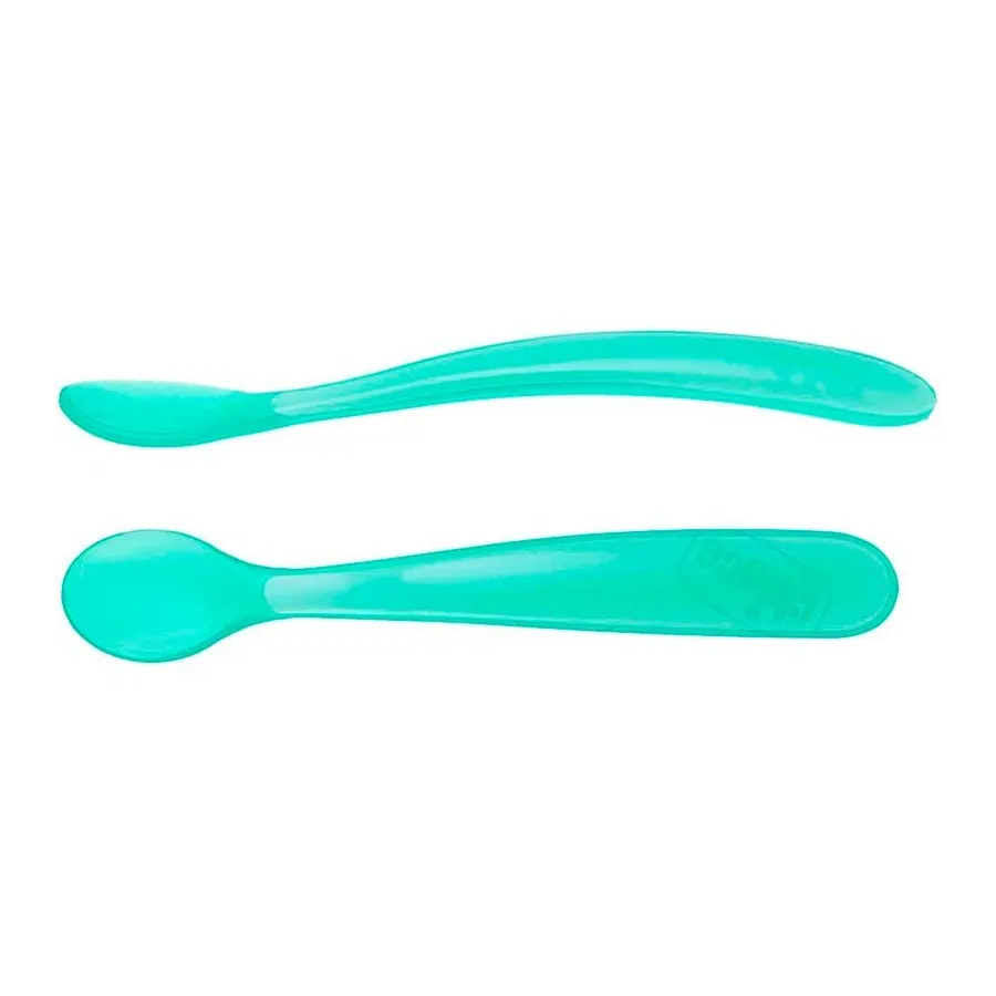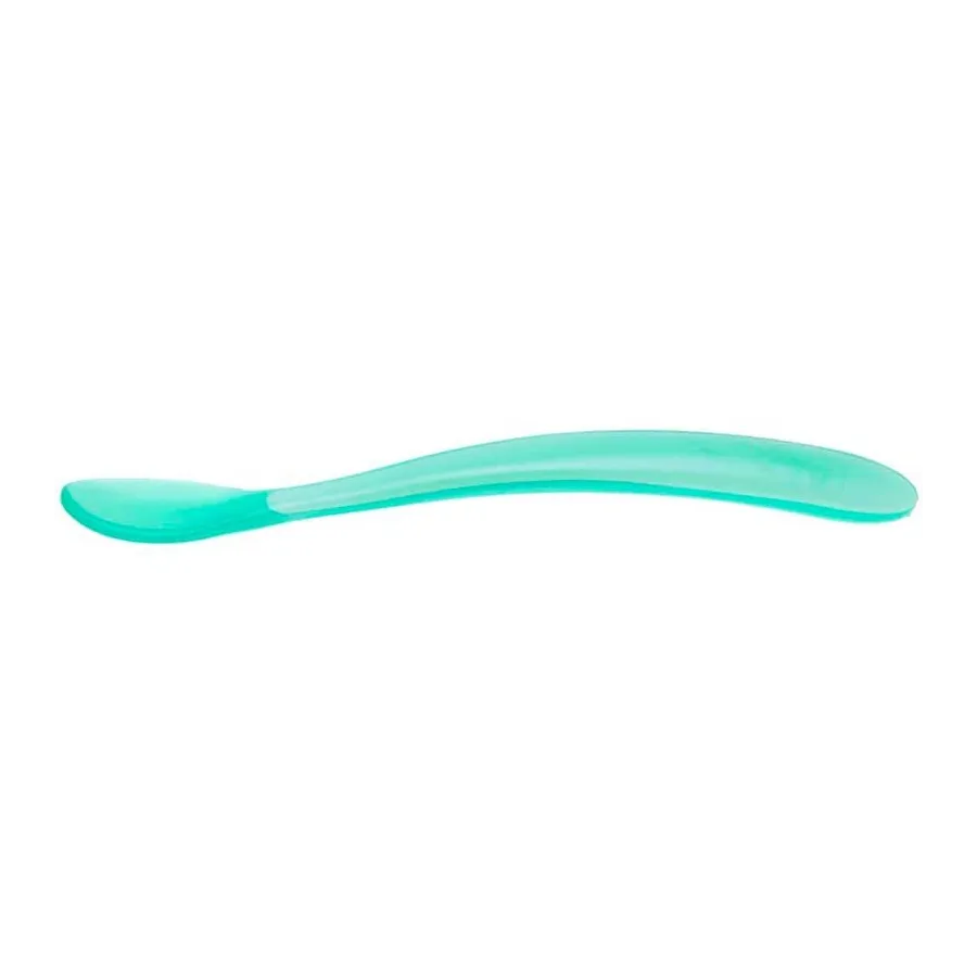 Cuchara blanda de silicona que permite alimentar al bebé de manera delicada, gracias a una punta flexible que ayuda a proteger las encías; el largo mango ergonómico proporciona una sujeción cómoda para alimentar al bebé; es fácil mantener la punta de la cuchara limpia gracias a su innovadora forma que hace que nunca toca la mesa cuando se coloca sobre ella; apto para lavavajillas.