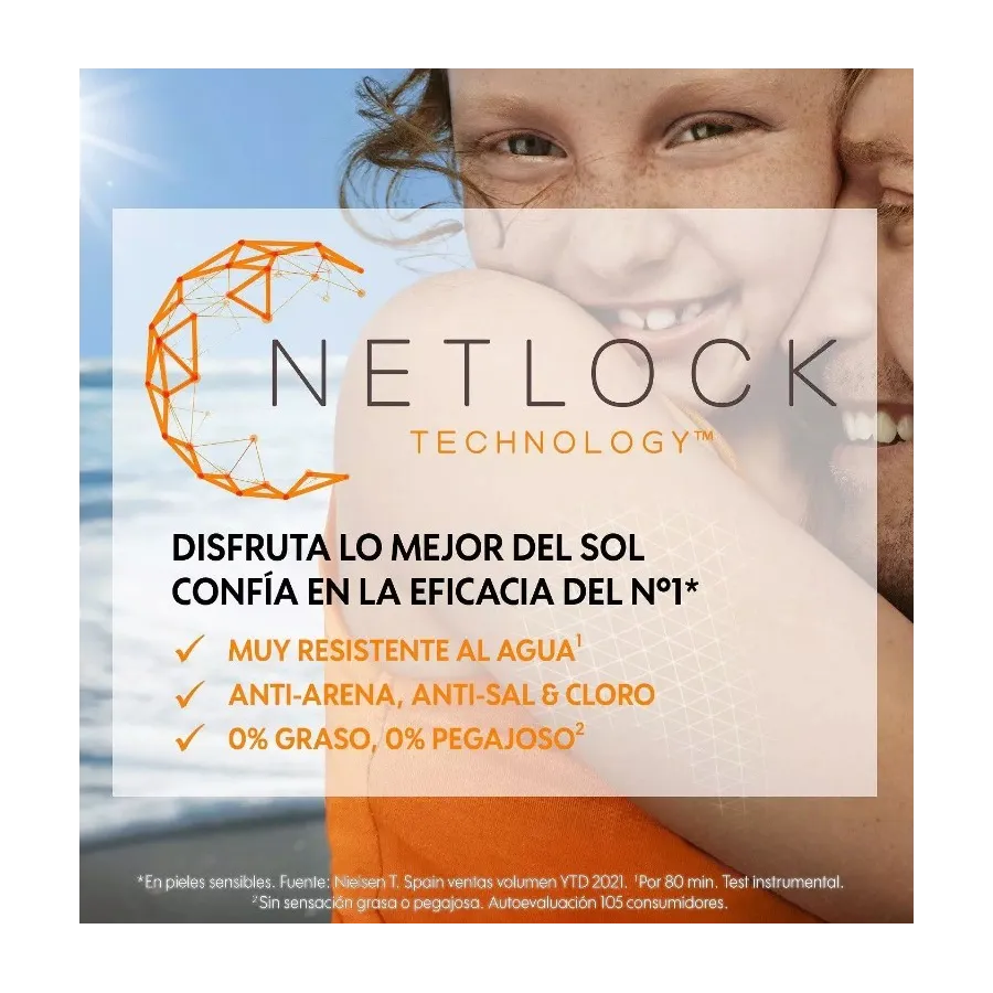 Su fórmula infalible es resistente al agua, a la arena, a la sal y al cloro para que el peque disfrute del verano y no tengas que preocuparte. Úsala para combatir eficazmente los efectos de los rayos UVA, UVB y UVA largos hasta en las pieles más claras y en todos los entornos gracias al altísimo nivel de protección que ofrece esta crema. Además, gracias al formato spray en bruma la aplicación es mucho más fácil y rápida.