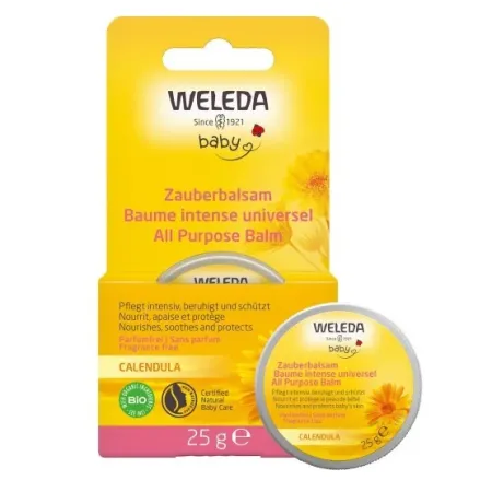 El bálsamo de caléndula de Weleda es un bálsamo multiusos intensivo perfecto para reparar y proteger las zonas secas de la piel del bebé. También se aplica para la hidratación facial de labios, nariz, barbilla y mejillas aportando un alivio inmediato. Su fórmula de ingredientes 100% naturales, enriquecida con caléndula, cuenta con potentes activos regeneradores que actúan en profundidad reparando y reforzando la barrera cutánea de la piel sensible del bebé.