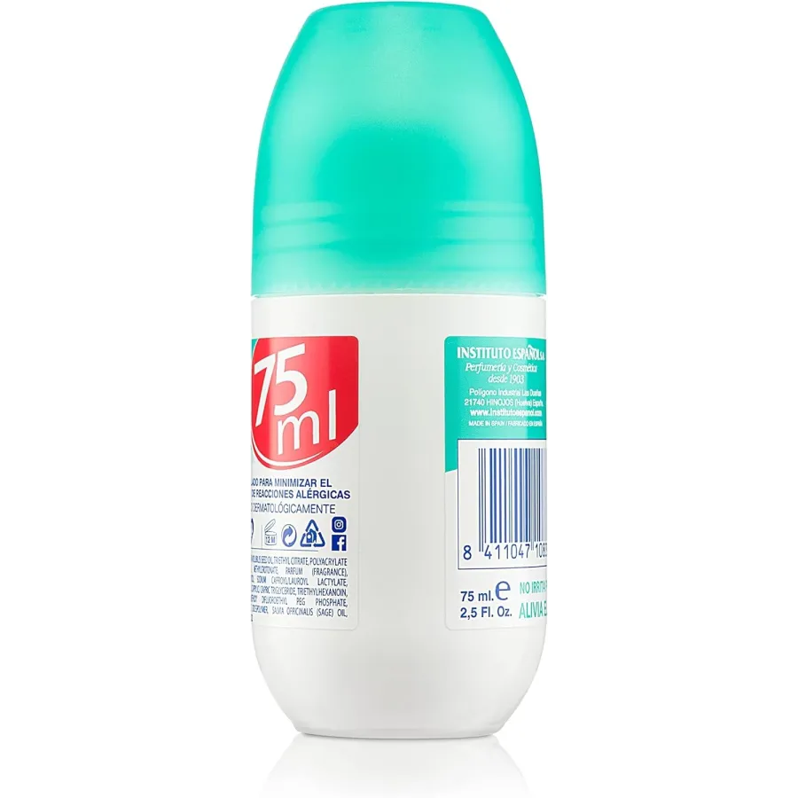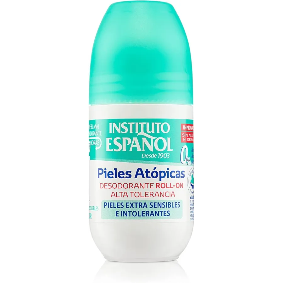 La fórmula del desodorante en Roll On para piles atópicas de Instituto español no contiene aluminio, alérgenos, perfume, alcohol ni parabenos y es un producto apto para veganos. Acción fresca y duradera.