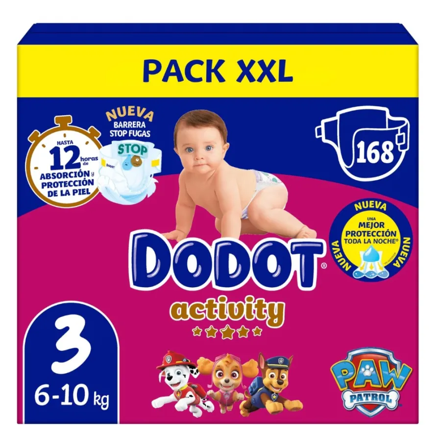 Pañales Dodot Activity Extra Talla 3. Box Ahorro 168 unidades