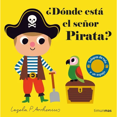 En ¿Dónde está el señor Pirata?, los pequeños lectores deben encontrar el Loro, el Mono,la Tiburona y el Pirata. Cuando levanten la última solapa… ¡se verán en el espejo!