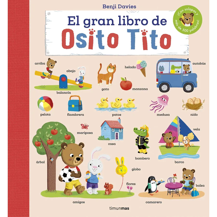 El gran libro de Osito Tito está diseñado para fomentar el aprendizaje y el desarrollo del habla del bebé. Comentando, señalando y descubriendo nuevos conceptos aumenta la confianza de los peques que absorben la información. Este libro riega la esponjita que hay en sus cabezas y es una explosión de detalles, novedades y sorpresas que le encantan a los más pequeños. En formato grande, de tapas duras y resistentes que se pueden manipular con manos pequeñas fácilmente. 10 escenas diferentes que contienen más de 500 palabras relacionadas con sus imágenes que el peque irá aprendiendo y diferenciando de forma divertida.