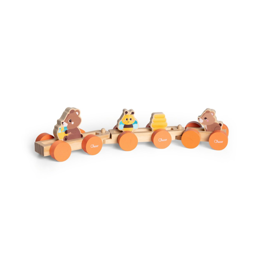 El tren de los ositos, colección. Chicco es mucho más que un simple juguete: es un compañero educativo, fabricado en madera natural y con un diseño que sigue los principios del método Montessori. Ideal para niños a partir de 1 año, este tren está pensado para acompañar sus primeros pasos en el juego simbólico y sensorial.