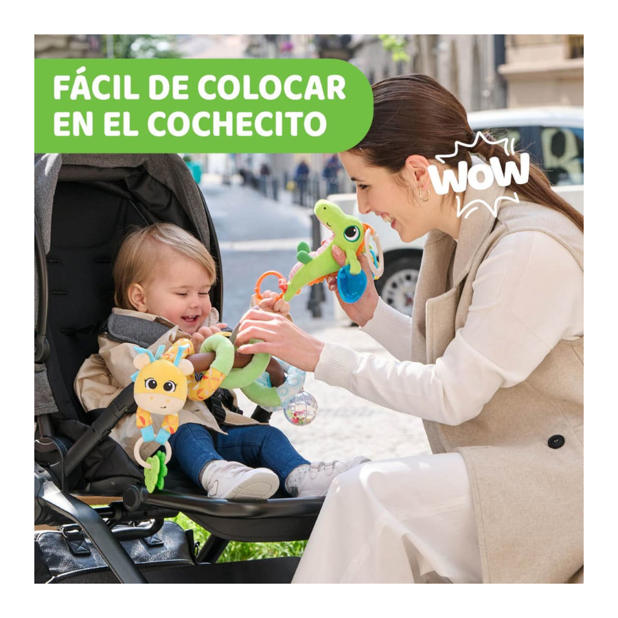 Convierte cada paseo en una experiencia de descubrimiento con la Espiral Mr. Jirafa de Chicco, un juguete diseñado para estimular los sentidos del bebé mientras se divierte con seguridad y confort.