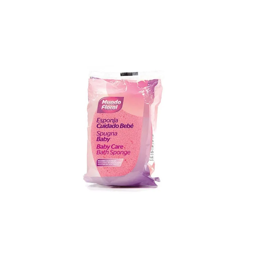 La esponja cuidado bebé de mundo floral ha sido diseñada para ayudarte limpiar la piel sensible del bebé respetando el manto lipídico y la barrera natural durante el baño diario.