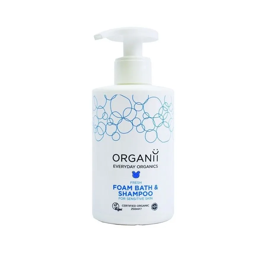Gel de baño y champú para bebés 250ml de Organii es dermatológicamente testado y su fórnula es libre de SLS, PEG, colorantes y perfumes añadidos, Phenoxyerhonal, parabenos o aceites minerales, así que son indicados también para las pieles sensibles.