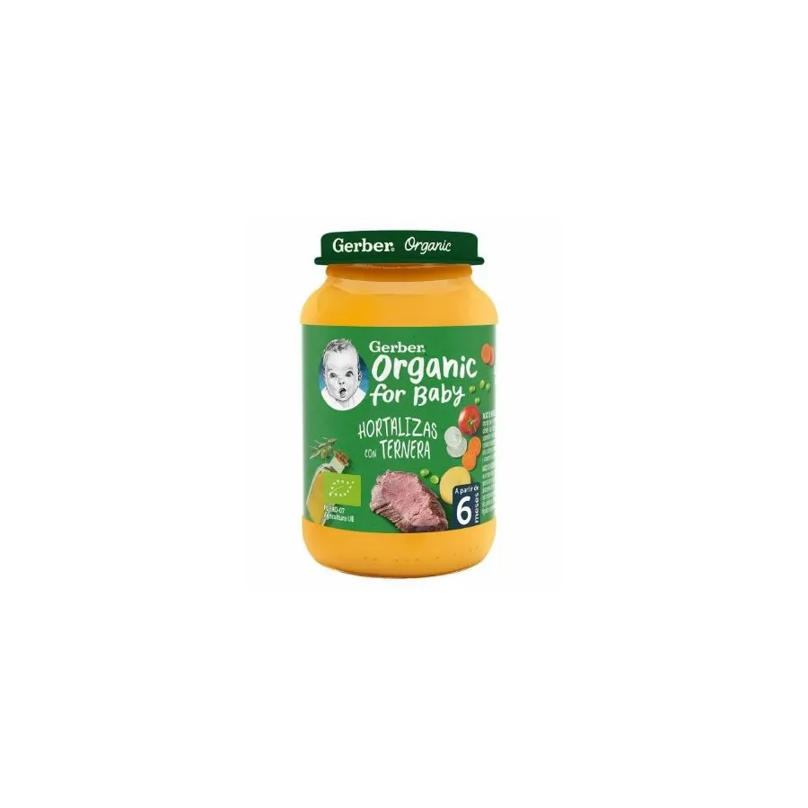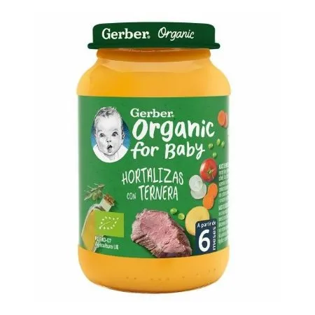 El tarrito Gerber Organic Hortalizas con ternera de Nestlé es una perfecta combinación 100% orgánico, además de no haber sal añadida y su receta no llevar conservantes, colorantes ni aceite de palma.