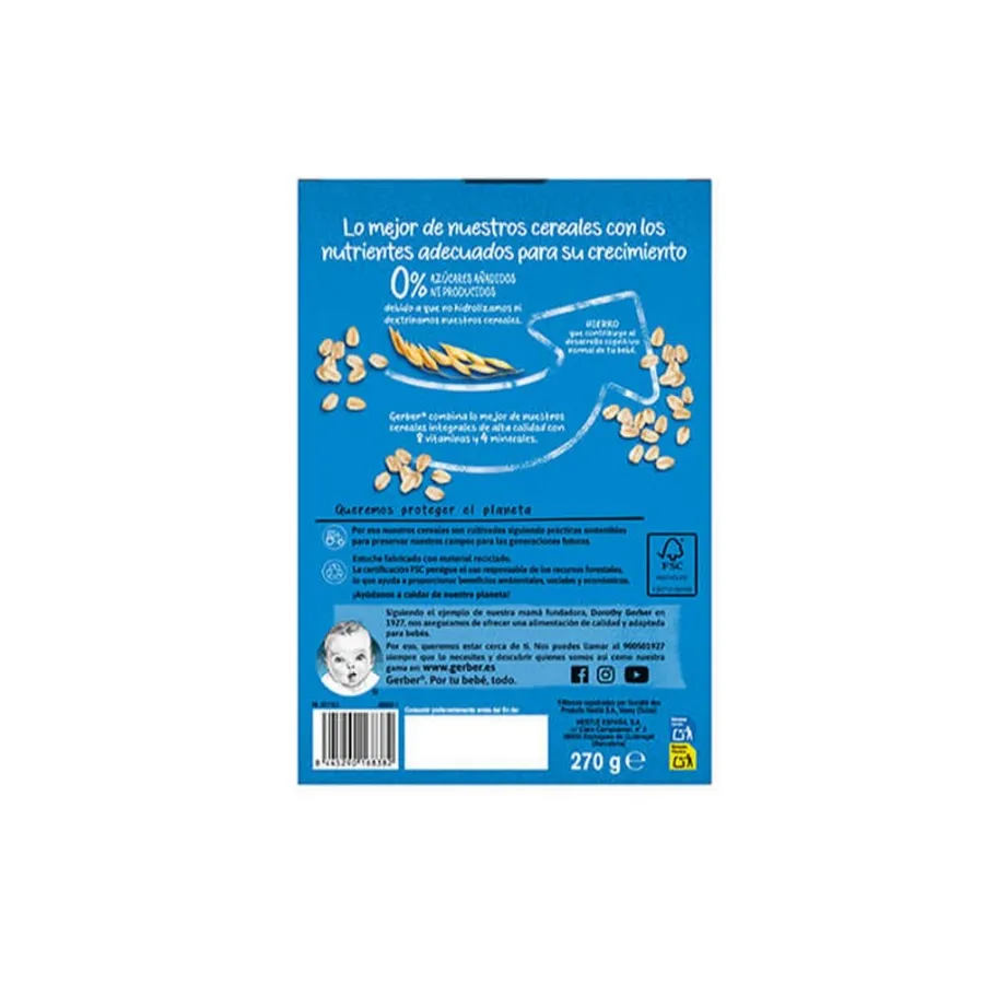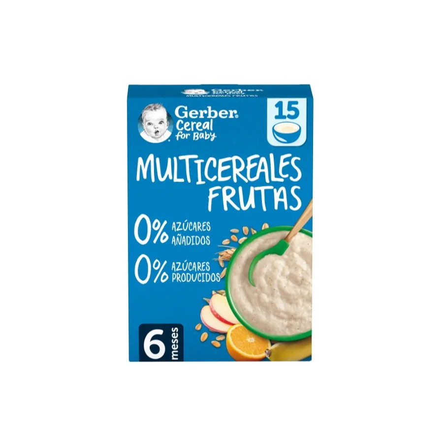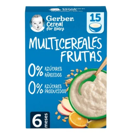 Papilla GERBER Nestlé Multicereales con Frutas 0% 0% Azúcares 270 g | Nutrición Natural para Bebé +6 meses