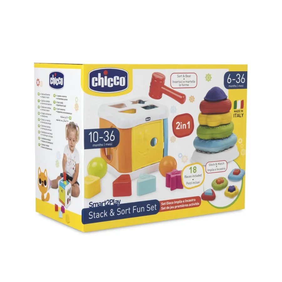 El Gift set Smart2play Chicco es mucho más que un simple juguete: es un set educativo y multiactividad diseñado para que tu bebé aprenda jugando desde los 6 hasta los 36 meses. ¡El regalo perfecto para estimular su desarrollo!