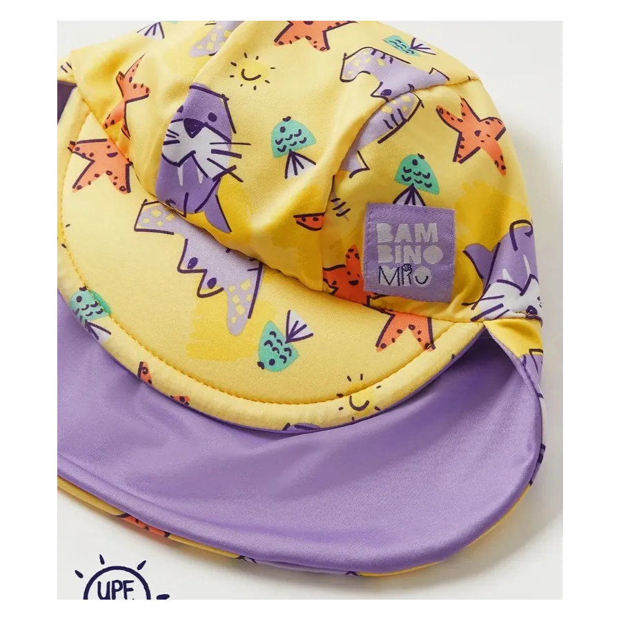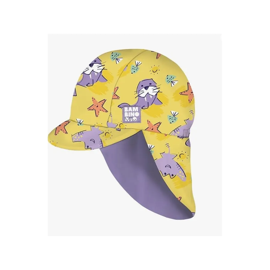 Gorro de Playa Reversible Amarillo-Violeta Sand. Bambino Mio