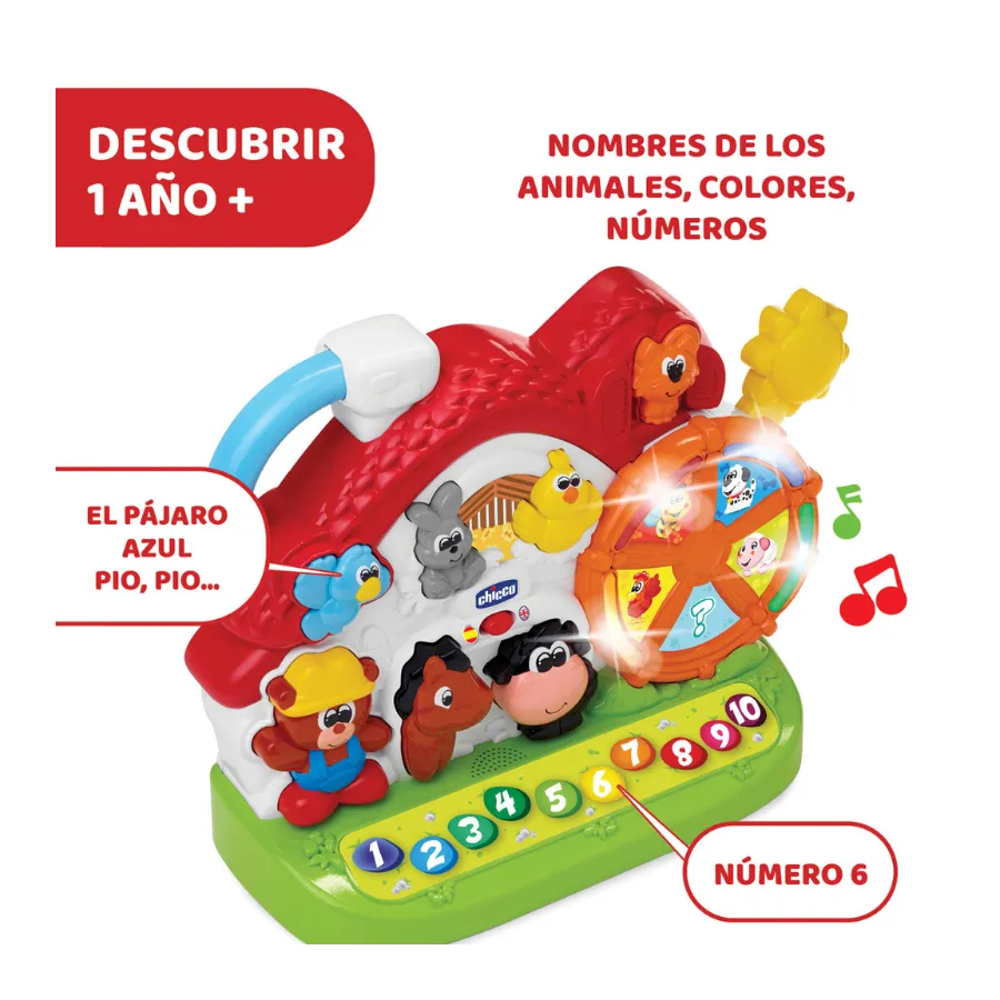 Los juguetes como la Granja Bilingüe de Chicco están diseñados para ofrecer un aprendizaje lúdico y significativo. No solo entretienen, sino que también introducen conceptos clave del desarrollo temprano, como: