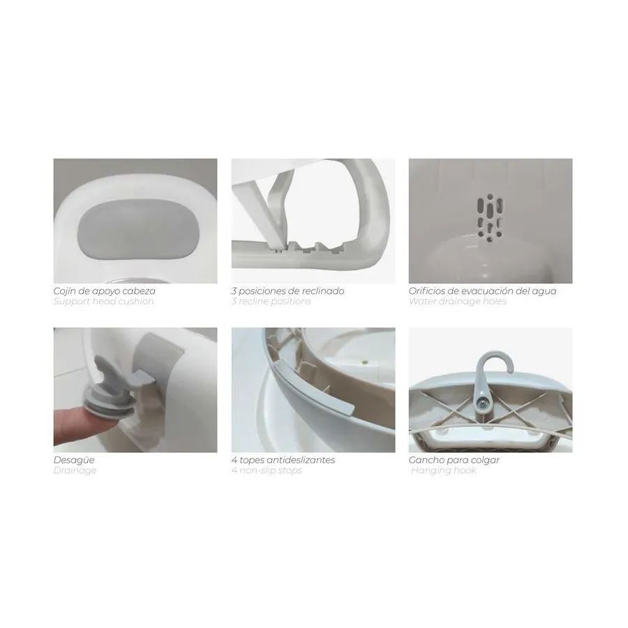 La hamaca de baño antideslizante Olmitos es la mejor solución para ayudarte con el baño del bebé.