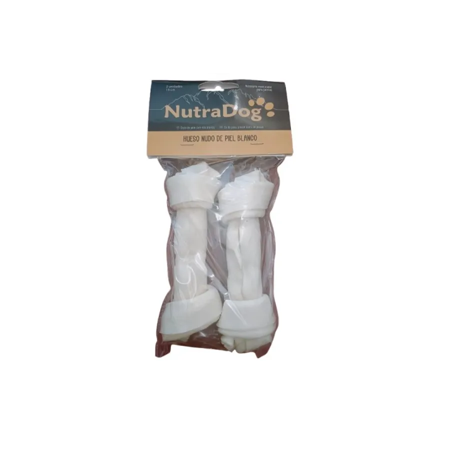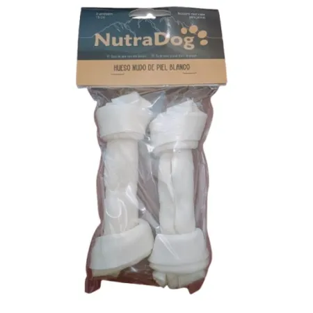 Huesos blanco de piel con nudo Nutradog. 2 und de 15cm
