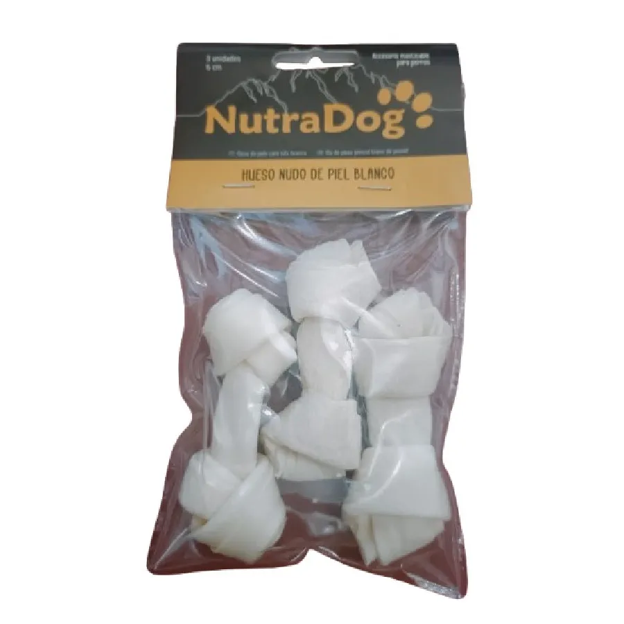 Huesos blanco de piel con nudo Nutradog . 3 Und de 6 cm