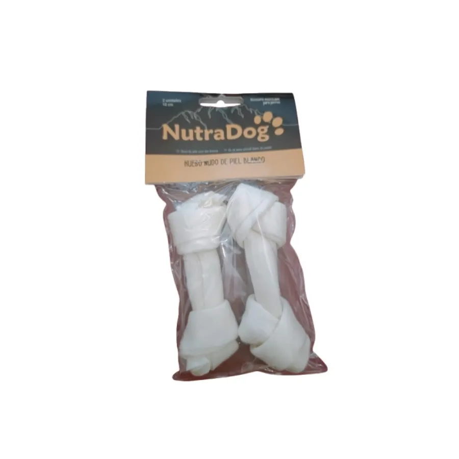 Huesos blanco de piel con nudo Nutradog. 2 und de 10cm