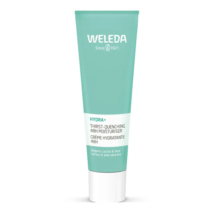 Hydra+ de Weleda es una crema facial hidratante de alta eficacia formulada con ingredientes naturales como aloe vera y extracto de cactus, que proporcionan una hidratación duradera y profunda incluso en pieles sensibles o deshidratadas.