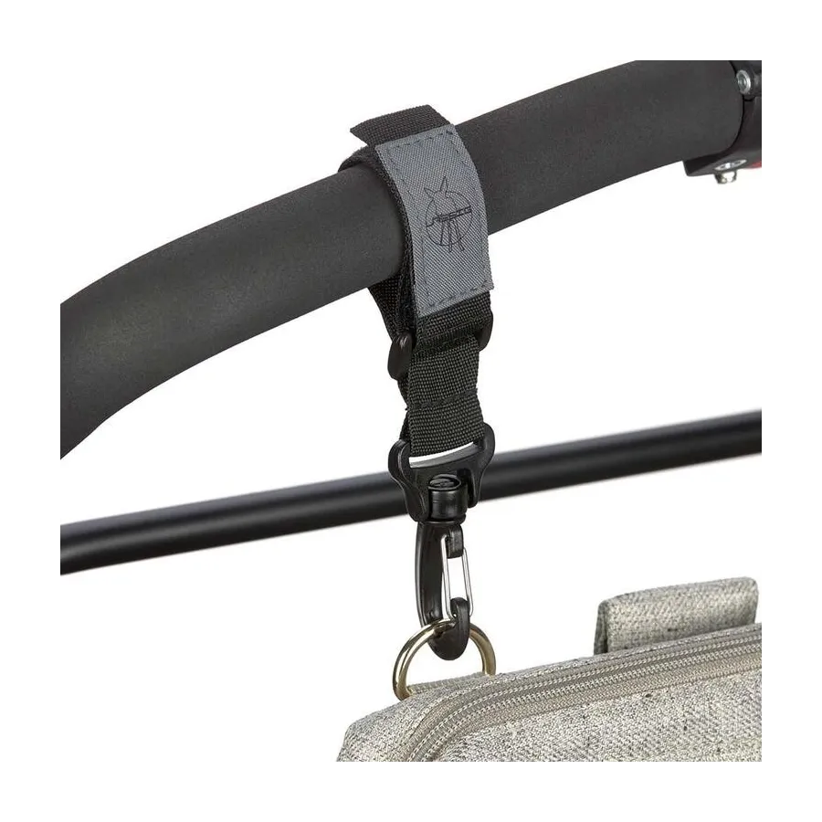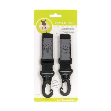 Este juego de 2 ganchos para bolso de la marca Lässig es el complemento ideal para los paseos con tu bebé. Gracias a su diseño resistente y funcional, podrás fijar de forma segura tu bolso de mano, bolso maternal o incluso una mochila ligera al manillar del cochecito.
