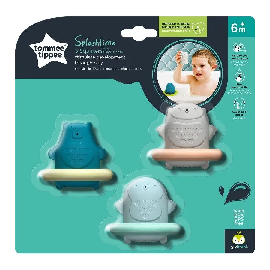Disfruta de la hora del baño junto a tu bebé con este divertido juguete de Baño "Lanza Agua" de Tommee Tippee y prepárate para mojarte con estos juguetes de la colección Grofriends. A tu pequeño le encantará apretar estos adorables juguetes y observar cómo sale el agua, o mirarlos subir y bajar suavemente mientras flotan en el agua.