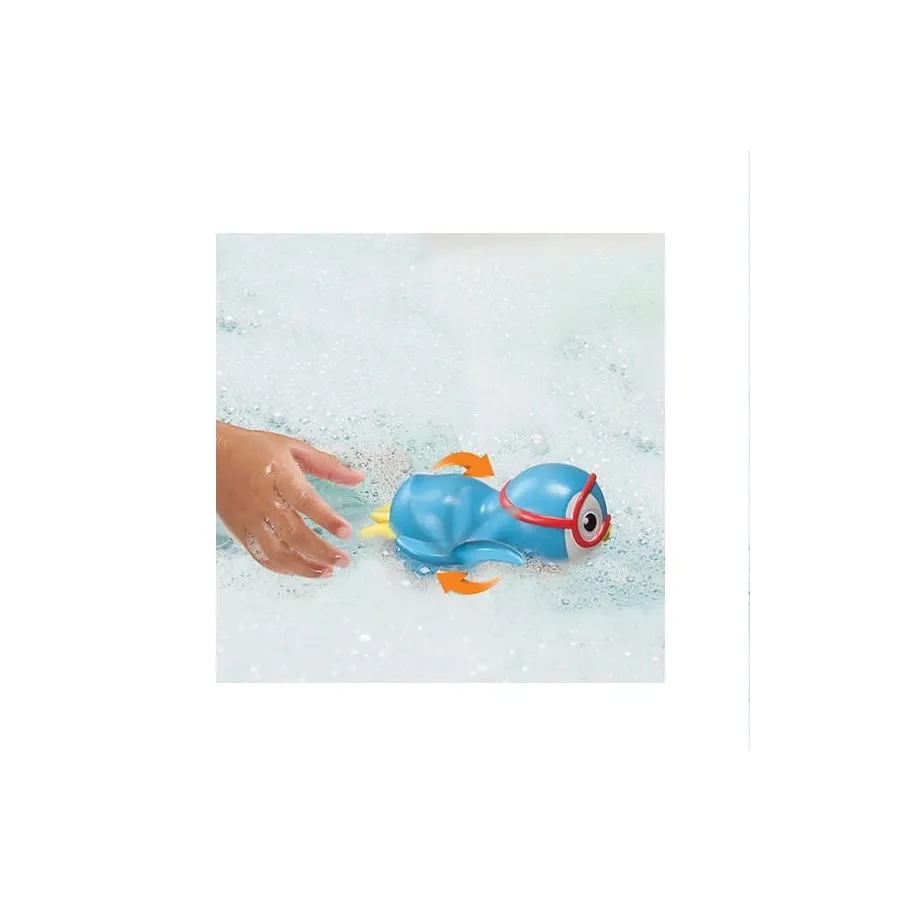 Preparados, listos... ¡A NADAR! Si a tu bebé le gusta salpicar en la bañera, le encantará jugar con este gracioso pingüino nadador. Este divertido pingüino nada de verdad, así que será el compañero de aventuras de tu peque, para hacer de la hora del baño su momento favorito.