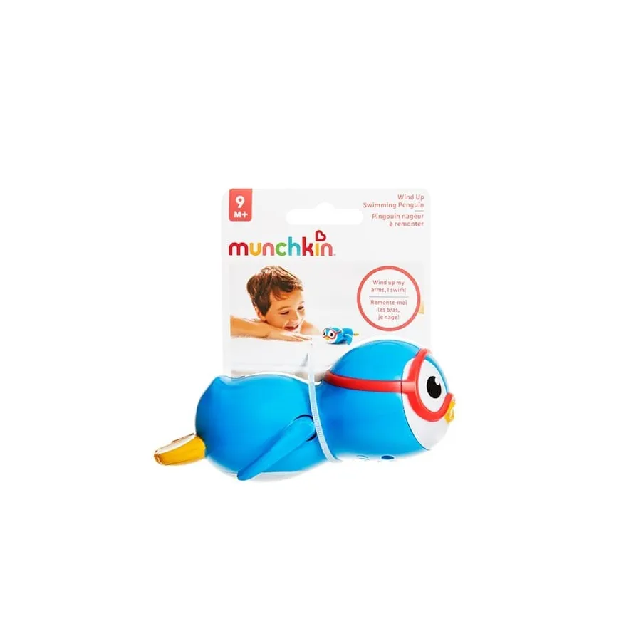 ¡La hora del baño nunca más será igual!, con este Pingüino Nadador de Munchkin tu peque se divertirá más que nunca. Este Pingüino nada de verdad, solo debes darle cuerda con los brazos y saldrá nadando.