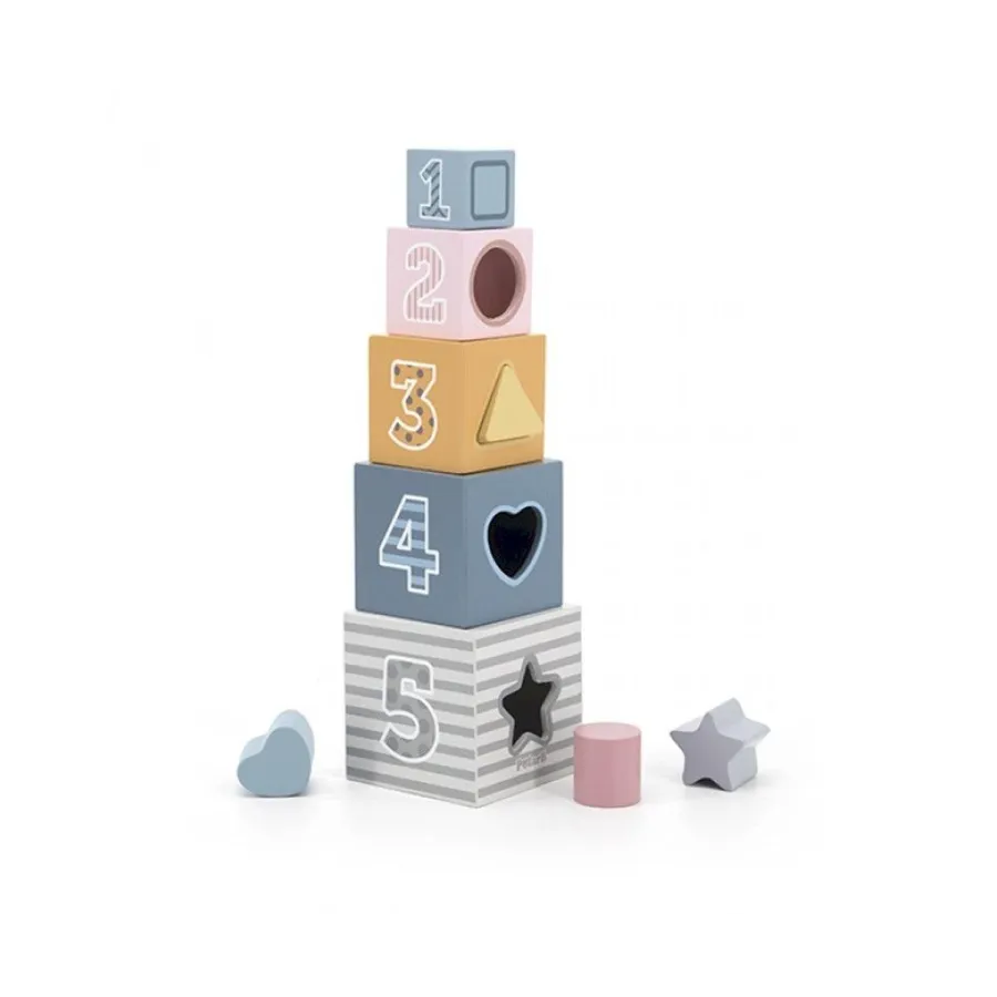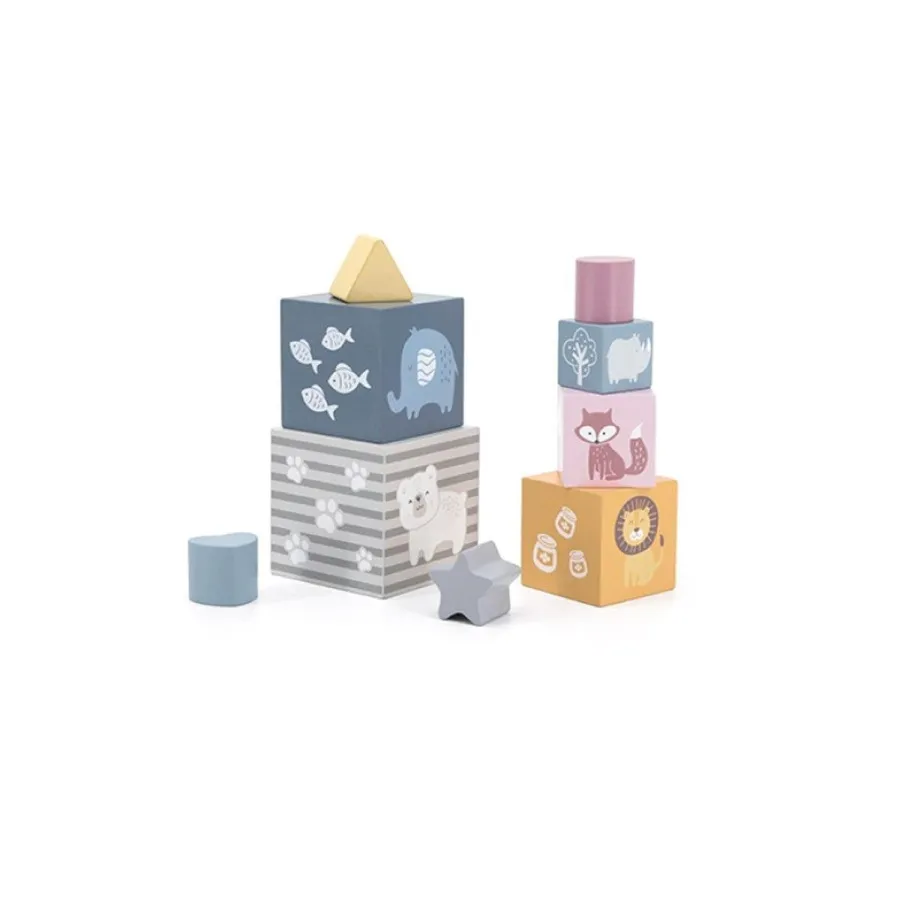 Los bloques apilables de PolarB son perfectos para que los peques aprendan distintos tamaños, colores y formas. Son el regalo estrella que nunca falla por ser económicos, divertidos y educativos. Está formado por 5 bloques numerados del 1 al 5 de tamaños y colores distintos con huequitos para encajar 4 piezas geométricas. Cada bloque también dispone de una encantadora ilustración que llamará la atención de los más pequeños. Material empleado: madera libre de tóxicos. Ideal para peques de +12 meses.