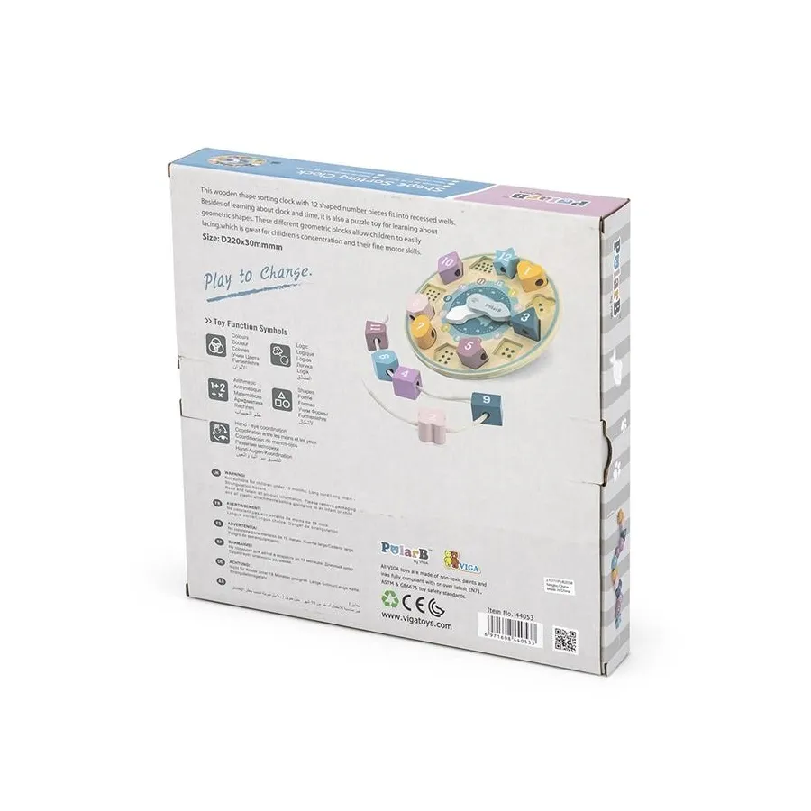 El reloj clasificador de formas es juguete de madera y alta durabilidad perfecto para niños de 2 años en adelante. Está formado por una base circular que simula un reloj analógico con dos manecillas y 12 bloques, de distintas formas y colores, numerados del 1 al 12. Los bloques tienen su lugar en el reloj y el peque se divertirá mucho encajándolos mientras aprende las horas y el concepto de tiempo, los colores, las formas y los números. Gracias a la cuerda, también podrá enhebrarlos desarrollando la motricidad y mejorando la capacidad de organización. ¡Ideal para aprender jugando!