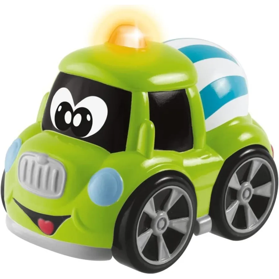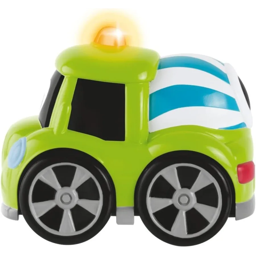 Gira la hormigonera y presiona la sirena para escuchar los sonidos divertidos. ¡Las ruedas también giran, cuánta diversión!